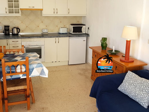 The apartment is just a short walk through Capistrano Playa’s beautiful tropical gardens to Burriana Beach. The beach offers a wide range of activities, including watersports (kayaking, parasailing, jet skis, diving, pedal boats, etc.), as well as numerous beachfront restaurants, bars, and shops. Additional amenities on the beach include showers, sunbeds, children’s play areas, and volleyball courts. The popular Balcón de Europa is a 20-minute walk away, and a local bus stop is just a few minutes' walk from the apartment.
